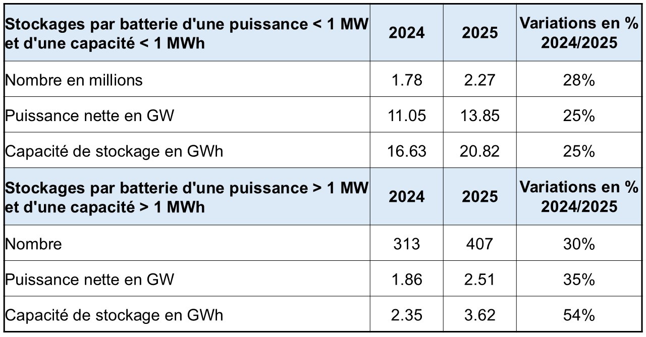 La charge résiduelle doit être couverte par des moyens pilotables tels que les STEP, les centrales thermiques à flamme et/ou par l’importation pour satisfaire à chaque instant la consommation d’électricité. Le stockage par batterie peut aussi contribuer à l’équilibrage du réseau mais la capacité est actuellement encore limitée, cf. tableau 4.