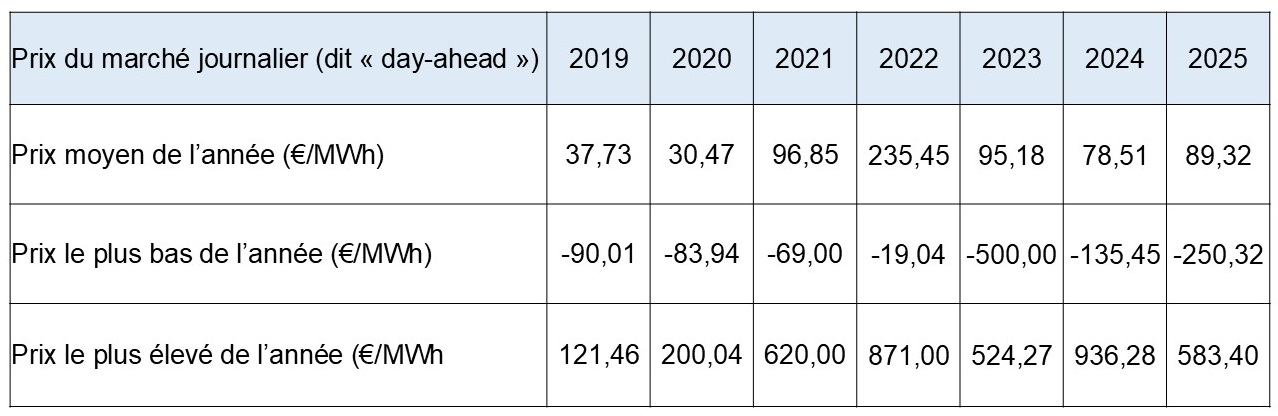 - Malgré l’augmentation de presque 14% des prix sur le marché de gros d’électricité, les prix pour le consommateur résidentiel ont baissé de 3,7% par rapport à 2024. Mais ils se situent toujours parmi les prix les plus élevés d’Europe ;