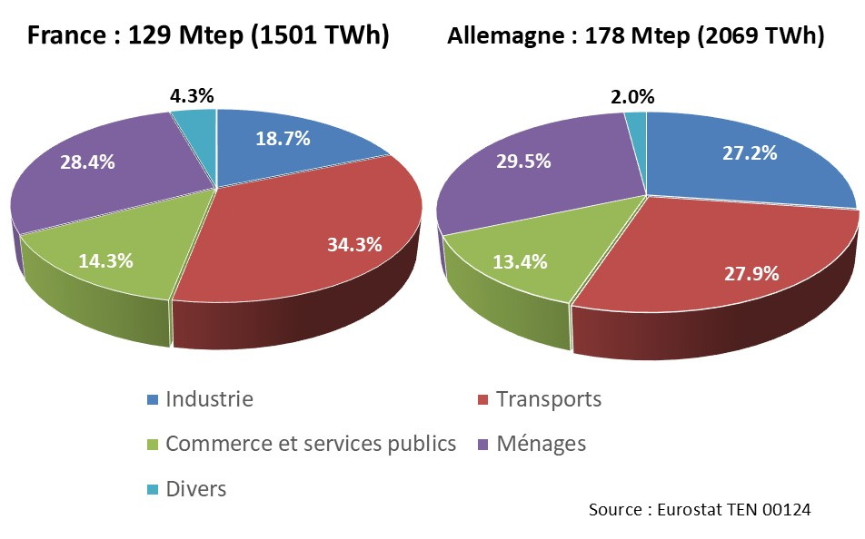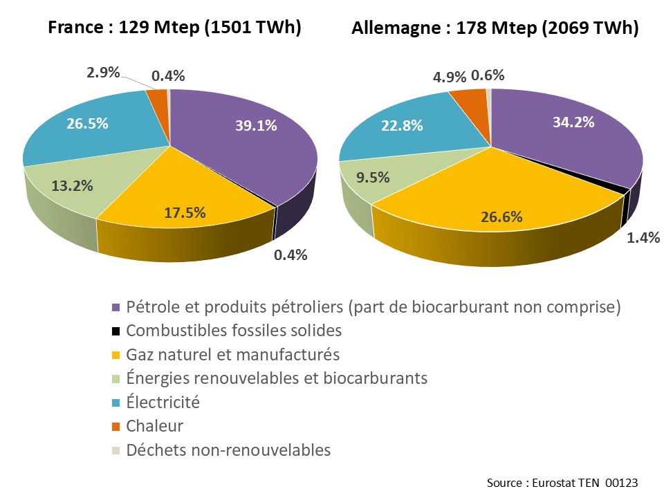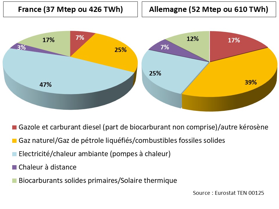 Le secteur chaleur & froid représente un peu moins de la moitié de la consommation finale d’énergie dans les deux pays.