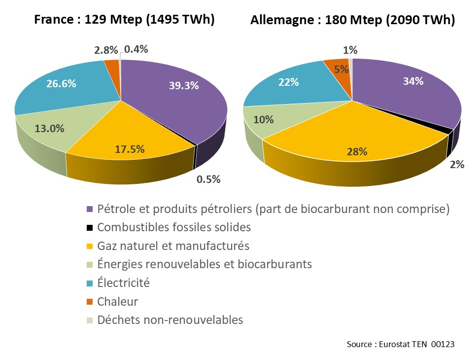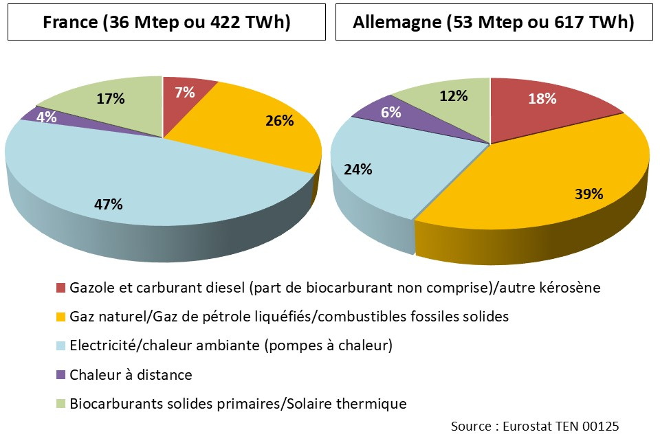 Le secteur chaleur & froid représente un peu moins de la moitié de la consommation finale d’énergie dans les deux pays.
