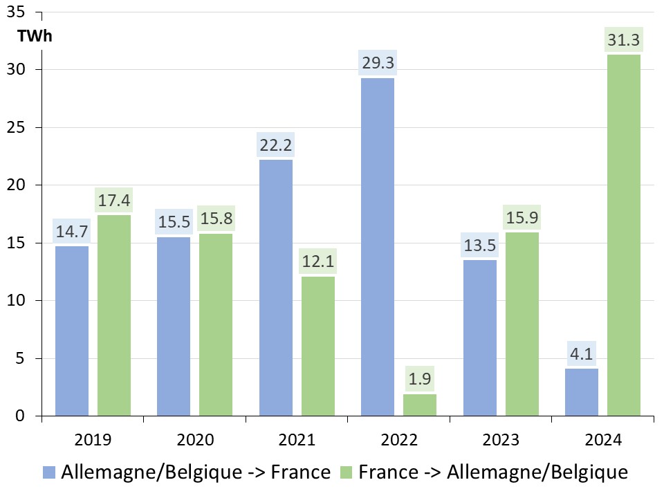 La production des énergies renouvelables s’est établie à 150 TWh (contre 135,6 TWh en 2023). Cette hausse de presque 10% par rapport à 2023 étant principalement due à l’hydroélectricité (conditions d’hydraulicité particulièrement favorables en 2024) et au solaire (croissance des capacités installées).