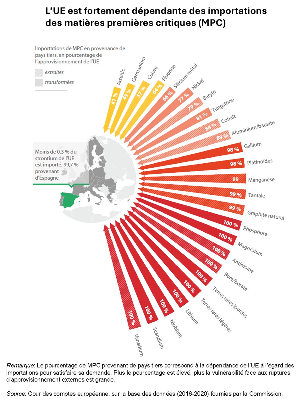 En revanche, selon la Cour des Comptes Européenne, l’UE éprouve des difficultés à garantir l’approvisionnement en matières premières dont elle a besoin pour atteindre ses objectifs énergétiques et climatiques. Telle est la conclusion d’un rapport récent de la Cour des Comptes Européenne (CCE 2026).
