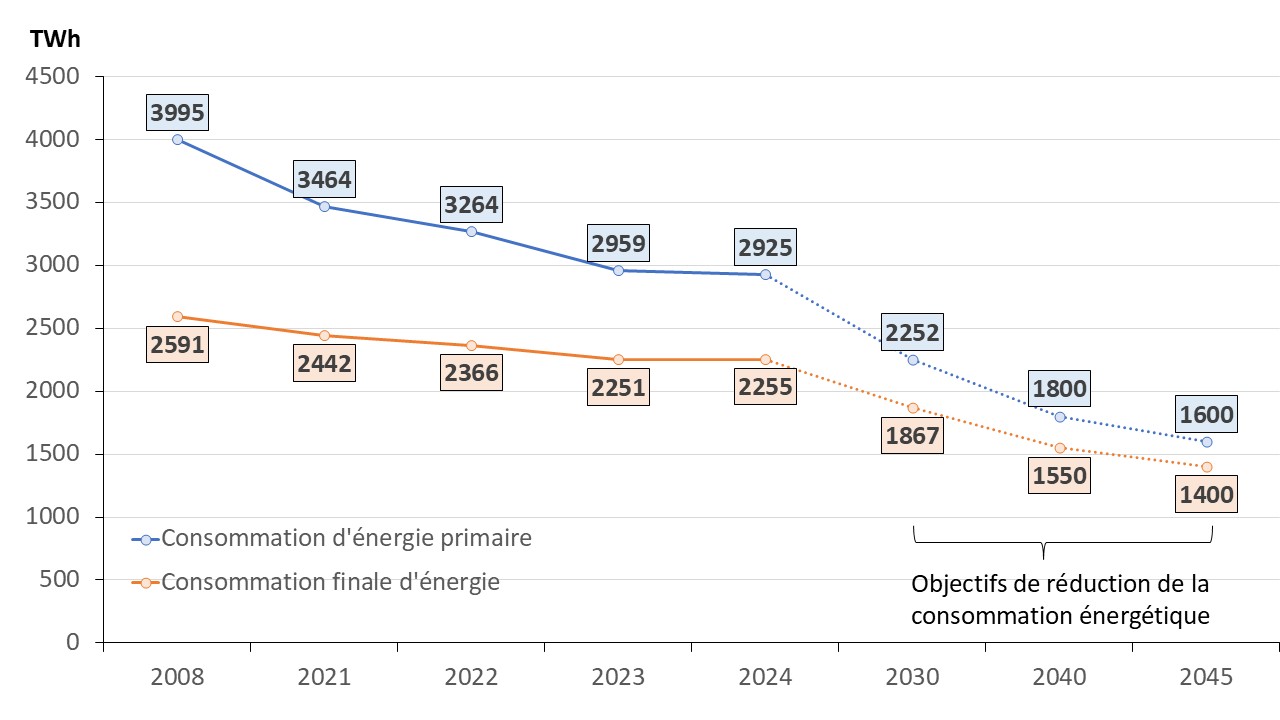 - Réduction de la consommation énergétique grâce à l’efficacité énergétique et des efforts de sobriété ;