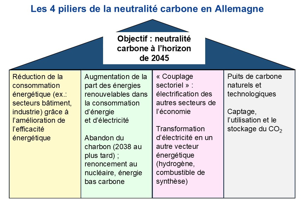 Alors que le concept énergétique de 2010 prévoyait encore une réduction de 80% à 95% des émissions de gaz à effet de serre par rapport à 1990, la Loi Fédérale sur la Protection du Climat (Bundes – Klimaschutzgesetz), entrée en vigueur en 2019, visait la neutralité carbone à l´horizon de 2050 (Allemagne Energies 2019b; BMJV 2019b).